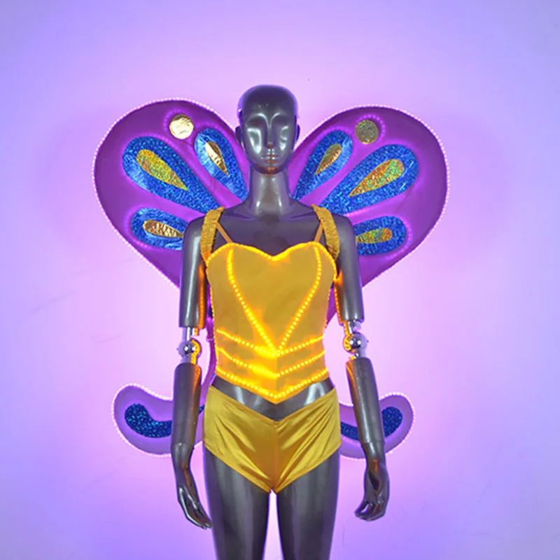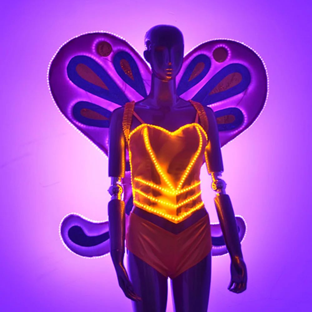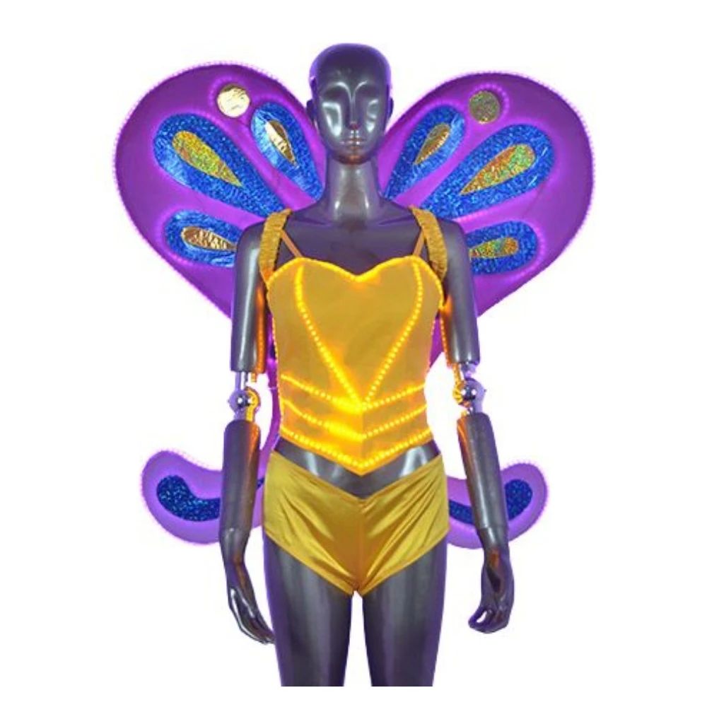 Women's LED Dance Top with Wings - Light-Up Butterfly Costume for Nightlife Stage Show Performance