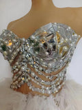Womens Performace Dress Female Mirror Decoration Pearl Costumes Festival Celebration Party Show Skirts